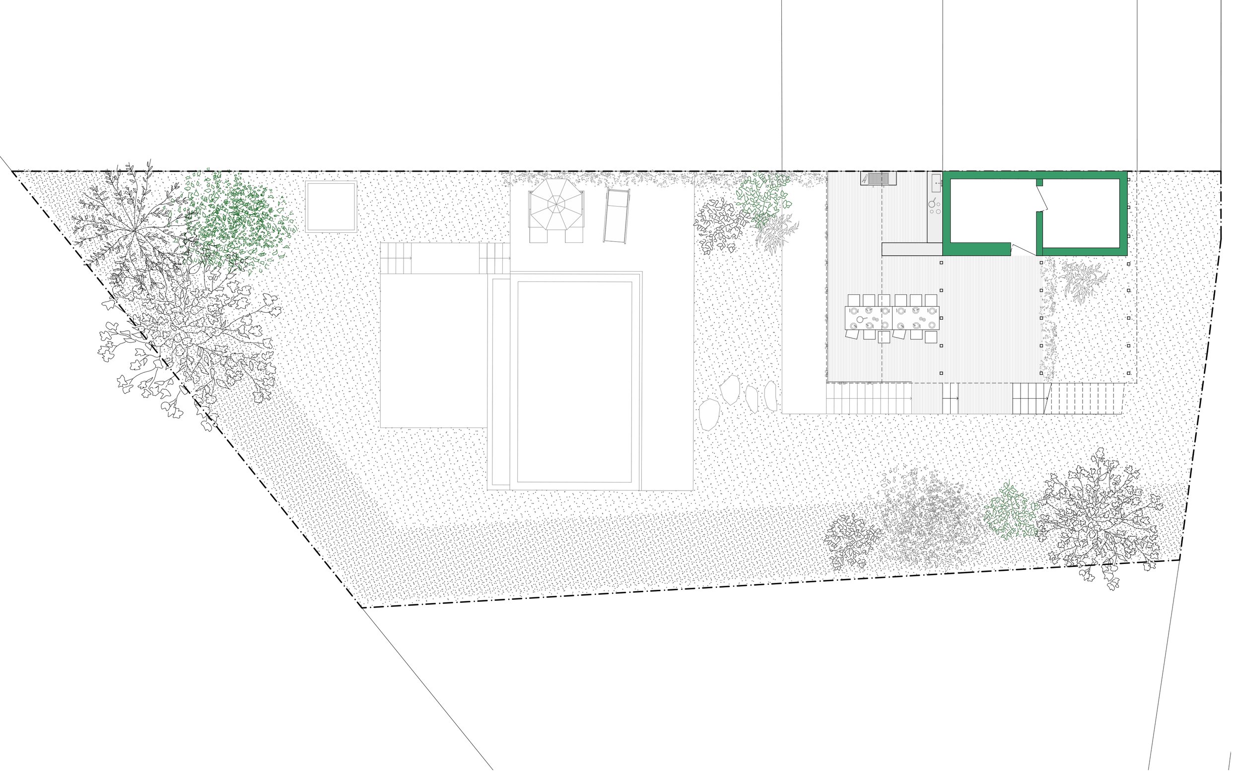 Der Entwurf wird auf Stelzen errichtet und in nachhaltiger Holzbauweise umgesetzt. Die leichte Bauweise reagiert sensibel auf das Gelände und ermöglicht eine klare Gliederung der Nutzung auf mehreren Ebenen.